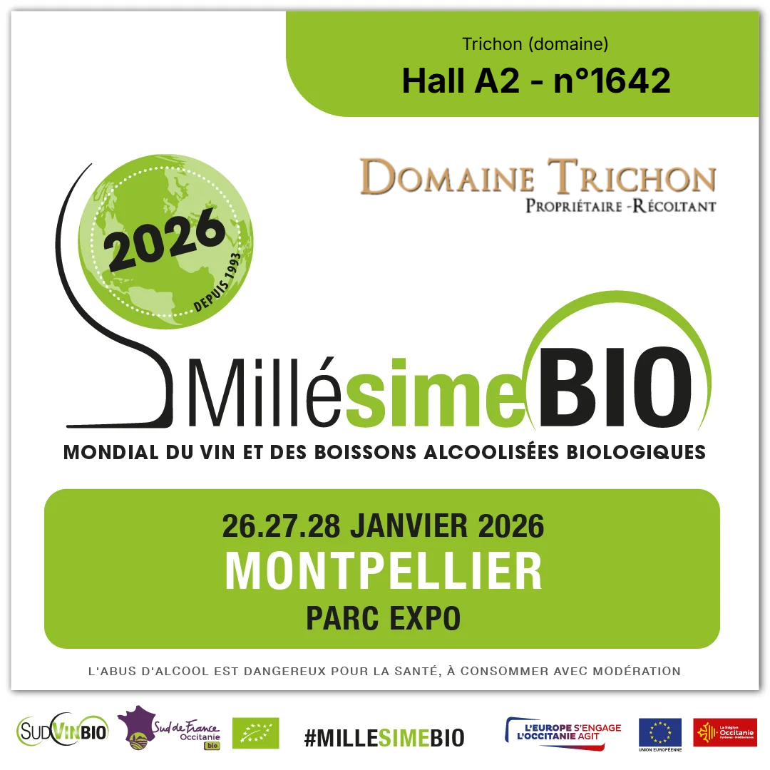 Nous serons présents au Parc Expo de Montpellier au salon professionnel Millésime Bio 2026 pour vous faire découvrir notre domaine et nos vins en Agriculture Biologique. Retrouvez nous sur notre stand Hall A2 N°1642.