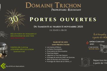 Nous sommes très heureux de vous annoncer le trentième anniversaire des portes ouvertes du Domaine Trichon à Lhuis.